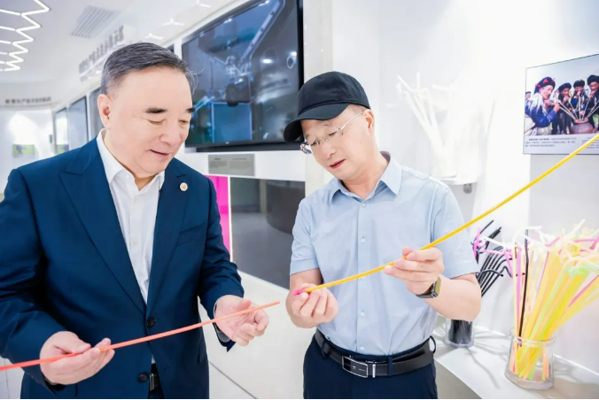 董事長樓仲平首先陪同宋誌平老師走進了中國吸管博物館(guǎn),通過琳琅滿(mǎn)目、形態各異的創意吸管來直觀(guān)地展示(shì)“小產品的無(wú)限可能”!樓總在向宋老(lǎo)師(shī)展示.17c嫩嫩草色视频吸管上的“小科技”