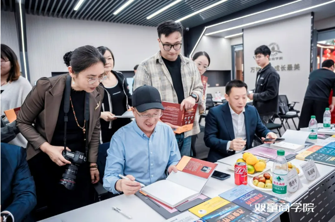 在最後的(de)簽書環節,現場讀(dú)者代表朋友更是熱情(qíng)高漲,將主編蘇勇老師和企業家(jiā)代表樓仲(zhòng)平兩位圍得“水泄不通”~