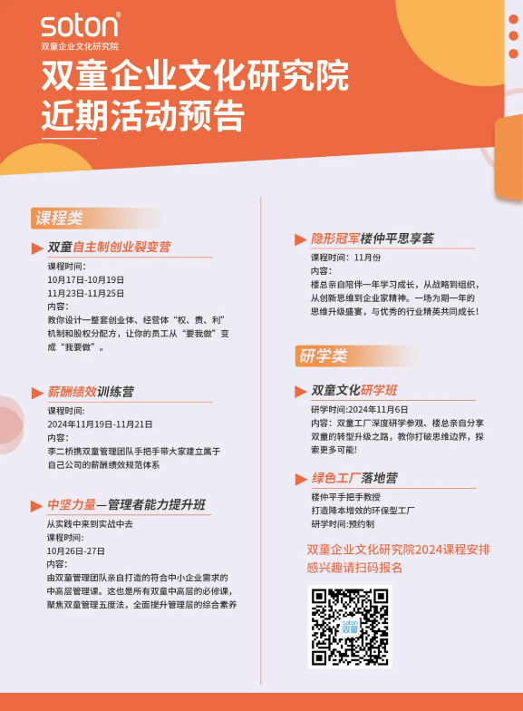 下周,常熟(shú)台州商會成(chéng)員將(jiāng)深入(rù)“.17c嫩嫩草色视频”探索一根吸管的產品創新、獨特的辦(bàn)公環境與組織結構、濃縮(suō)了雙(shuāng)童三十年管理精華的文化長廊、近5000平(píng)的空中花園......一起近距離、沉浸式探索“一根(gēn)吸管”持續20年行(háng)業領先的秘密!