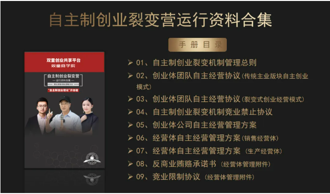 3、交付自主製創業(yè)裂變模式的各項(xiàng)規則、文本、合同等書麵資料