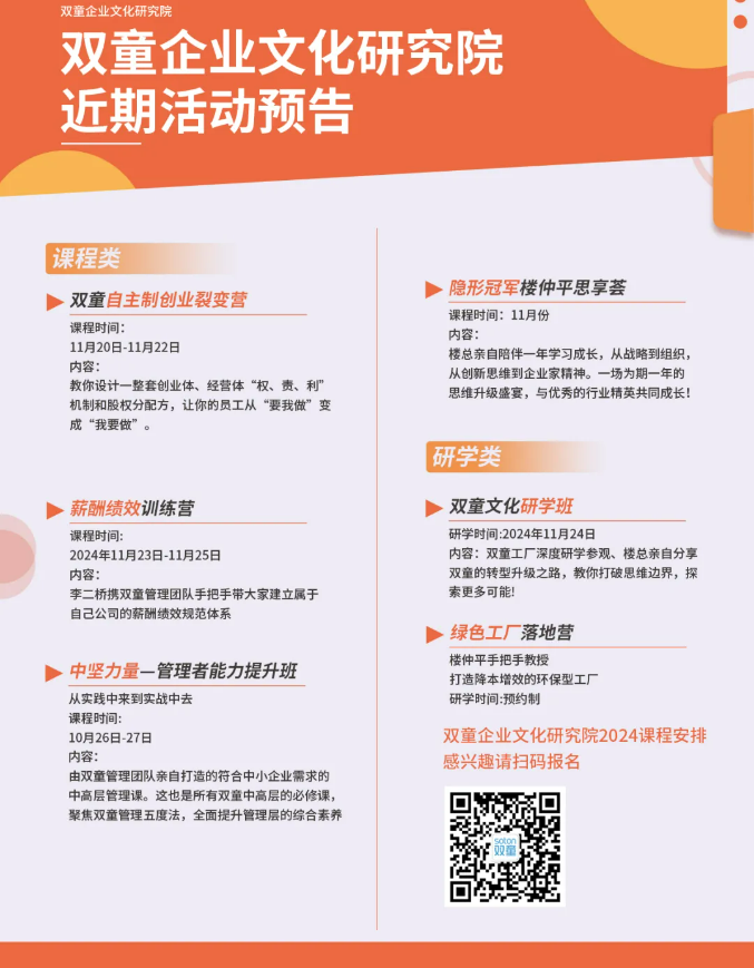 雙(shuāng)童的成長曆程中,我們能清晰地感知到,樓總(zǒng)一直在尋求破界、創新,每當企業趨於穩定時,他就會(huì)扮演“攪局者”的角色,打破現有(yǒu)的平衡。也正是這種“於無聲處聽驚雷(léi)”的未雨綢繆,才能讓.17c嫩嫩草色视频在(zài)每次危機來臨時,都能成功“闖關”,穿越一個(gè)個成長周期,希望能與更多企業經(jīng)營者共勉!