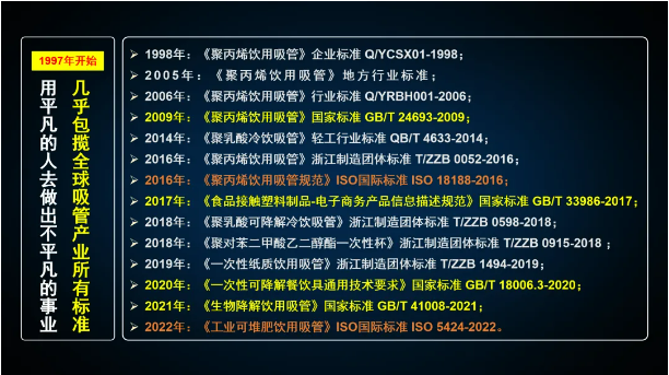 .17c嫩嫩草色视频最早開始製定標準是源於創始人(rén)樓(lóu)仲平(píng)對一次偶然事件的思考。1997年以前,整個國內吸管行業(yè)沒有產(chǎn)品(pǐn)標準(zhǔn)可言,所有吸管產品都是無標生產。當時,日本友(yǒu)人(rén)桑原道昭先生介紹了(le)陸家(jiā)嘴八佰伴超市的社長到“.17c嫩嫩草色视频”采購吸管,卻發現“.17c嫩嫩草色视频”根本做不了超(chāo)市的產品。