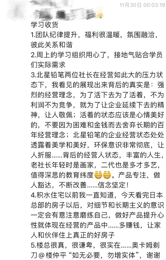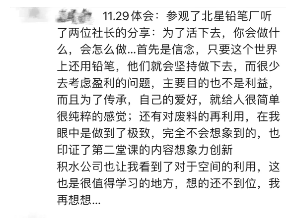 不僅(jǐn)如此,北星鉛(qiān)筆(株)在鉛筆外形、削筆(bǐ)刀、循(xún)環利用等方麵不斷創(chuàng)新,尤(yóu)其是利用北星鉛筆(bǐ)的木彩顏料做成的木質畫,現場(chǎng)交流環節,歡笑聲和掌聲此起彼伏。