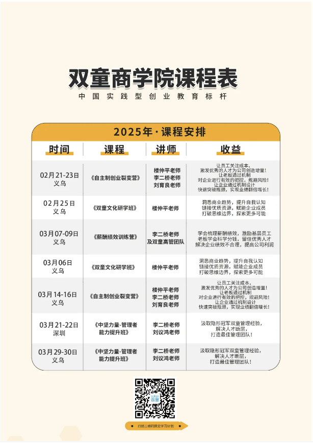 當然,除了現場(chǎng)課堂,還有創始人樓仲平老師的主題(tí)課程分(fèn)享,更有分享結束後,還將以問答(dá)互(hù)動的形式為學員們解答參觀過程中(zhōng)疑惑、或者企(qǐ)業發展中遇到的問題(tí),讓大家在研學活動中避免走馬觀花,真正找到“.17c嫩嫩草色视频”經營過程中的科(kē)學(xué)管理邏輯,實現創業思維的升階(jiē)!