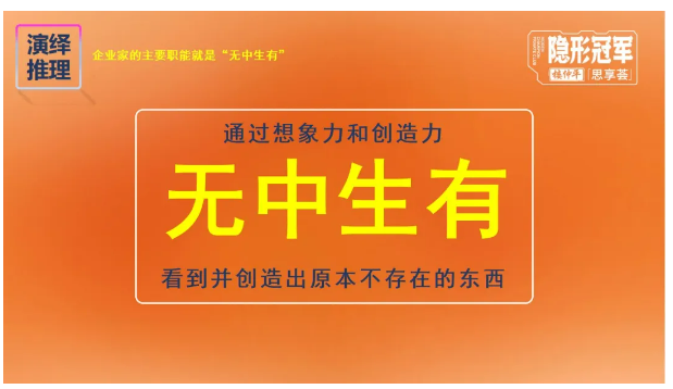 而(ér)推動企業創新的(de)職能主(zhǔ)體則是(shì)企業家,企業(yè)家才是創新(xīn)循環的驅動者。因為經濟增(zēng)長的(de)根本源泉是人類的“想象力”和“創造力”,所以企業想要獲(huò)得新的經濟增長,就需要企業家通過“無中生有”的想(xiǎng)象,發現潛在價值機會或者盈利(lì)空間,創造出原來不存在的東西。