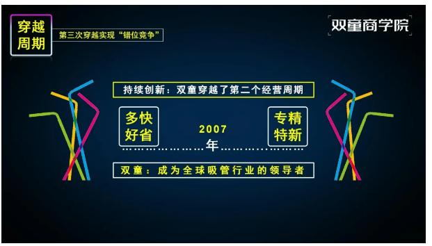 通過持續的創新,讓“雙(shuāng)童”又穿越(yuè)了一個周期,完成了從“多快好省”到“專精特新(xīn)”的轉變,成為吸管行業當之無愧的(de)“隱形冠軍”!