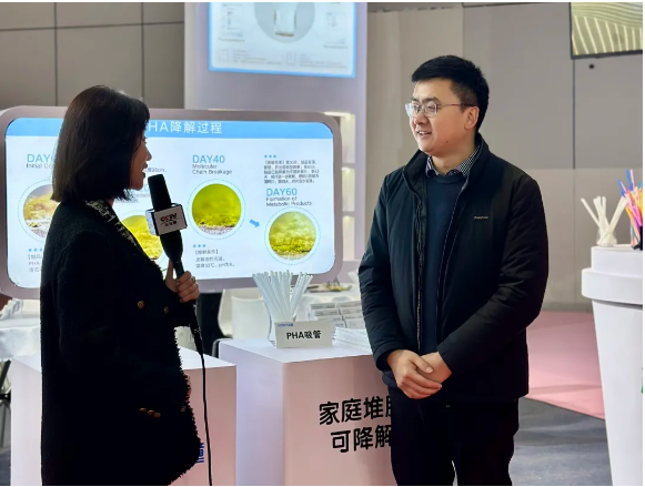 這一環保(bǎo)創新不僅吸引了大量參觀者的關注和駐足了解,還吸引了央視(shì)媒體前來采訪報道!總經理李二橋表示(shì):在國外當中,隨著歐盟的限塑,它對於PLA的這種產品是不允許使用的。但是對於這種海洋(yáng)降解的產(chǎn)品,它是完全接納的。所以這一個產品自推出市場以來,已經接收到了國內外非常(cháng)多的客戶的一個詢盤和小規(guī)模的這種試單。在(zài)未來相信它(tā)一定是下一個引爆市(shì)場的(de)一(yī)個新產品。也希望大家對這一款產品感興趣的,可以向我們來(lái)谘詢了解。