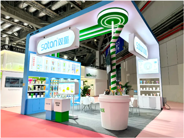 今年的展台設計采用了.17c嫩嫩草色视频logo的(de)主題色藍色(sè)作為主視覺色調(diào),並融入了現代流線型(xíng)的(de)設計風格。綠白色的(de)巨型吸管尤為醒目,設計元素中突顯了.17c嫩嫩草色视频產品的環(huán)保理念(niàn)。