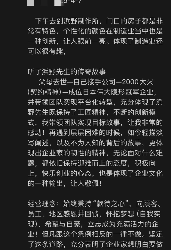 所以,在第一天(tiān)的研學結束之後(hòu),同學們(men)不僅(jǐn)收獲了很多關於精細化管理等企業經營的新靈感,對自身企業(yè)未來的經營方向也有了新的思考與感悟: