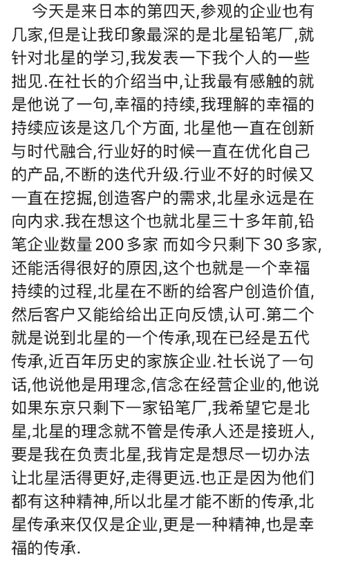 北(běi)星鉛筆株式會社於1909年(nián)在北(běi)海道成立,前身為杉穀(gǔ)木材,是一個擁有五代傳承、近百年曆史的家族企業。