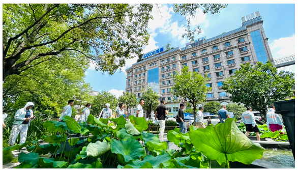 夏(xià)天的(de)傍晚,員工們三兩成群漫步橋畔,沉醉荷池美景。聽(tīng)瀑(bào)布潺潺,看斜陽映水,魚兒遊弋,簡直美得像一幅畫~