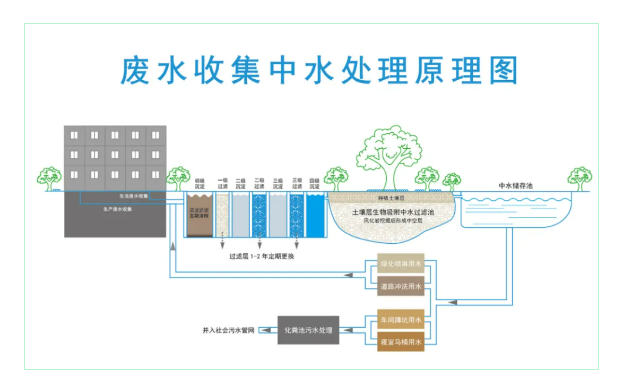 所謂“廢水收集處(chù)理循環回用係統”,就是將員工的生活廢水過濾後匯聚到“ .17c嫩嫩草色视频一號樹”下進行生物吸附處理,形成中水,然後再流入景觀池下的中(zhōng)水儲存池中,以便供給廠區所有衛生間的馬(mǎ)桶衝水、綠化(huà)噴淋和道路清洗(xǐ)、車輛清洗所用。
