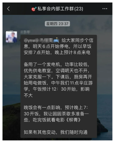 15日晚,結束了第一天課程學習後,課研組突然接到了因為修路導致全村次日全天停電的通知。很顯然,這是一個非常棘手的突發狀況。