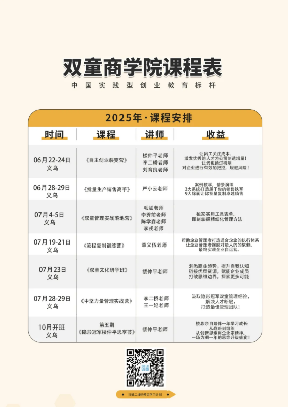 分享(xiǎng)的尾聲,樓老師告訴各位創業者:萬變不離其宗,也(yě)希望 “雙(shuāng)童”的經營理念(niàn)和轉型經驗能為時代(dài)變革下各行業的中小企業提供新的發展思(sī)路!