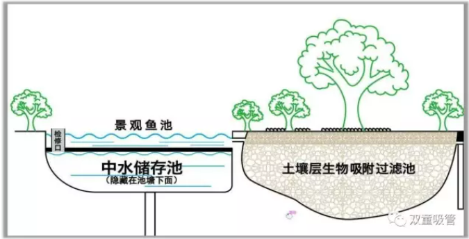 中水儲存池(chí)就隱藏在(zài)池塘下麵