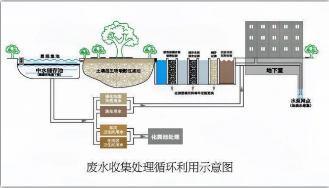 中水景觀池是廢水收集處理係統的關鍵一環