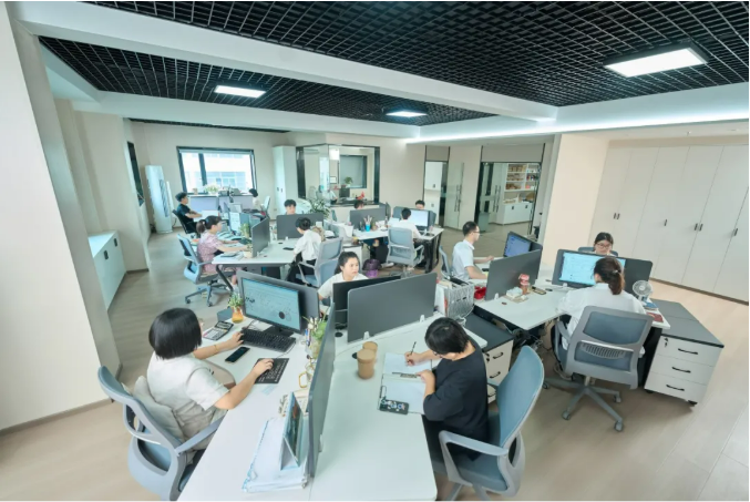 最中間的是創(chuàng)始人樓仲平的工位,旁邊的是總經理李(lǐ)二橋工位,而總經理助理的位子就緊挨在一起。集體辦(bàn)公的形式,就意味著所有員工都(dōu)能平等交流與通力(lì)協作,節省溝通時間和(hé)成本,也方便培(péi)養人才,給(gěi)企業發展(zhǎn)的軸承(chéng)續上了潤滑油,更易於(yú)開放事物性討論與跨部門協調溝通工作。