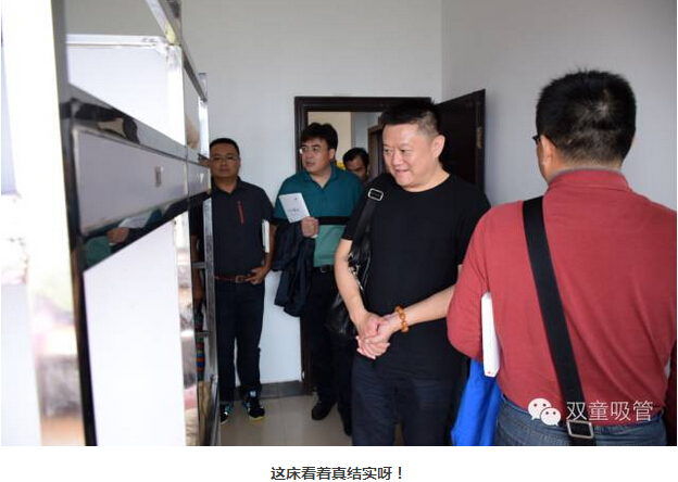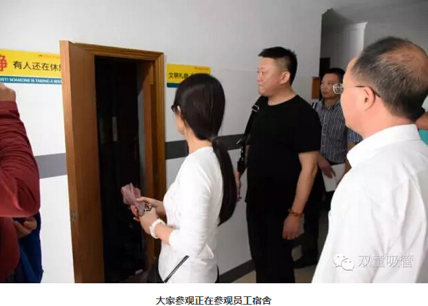 參觀員(yuán)工寢(qǐn)室時,當家人樓總向大家(jiā)介紹我們的寢室。每個房間都配有幹淨整潔的洗手間、寬敞明亮的洗衣陽台,並配有各種家具,每個房(fáng)間安裝有空調,24小時供應熱水(shuǐ)洗澡和純淨飲用係統。就連我們的不鏽鋼床,都是我們自己設計(jì),在建造之初就已經焊死在地(dì)上,防止員工發生安全事故的同時,也最大程度上保證(zhèng)了寢室的整潔。