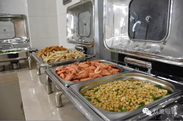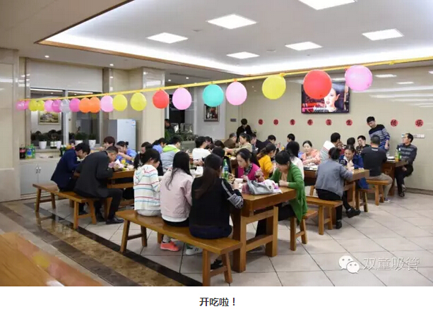 晚上7點半,壽星們走進由後勤科掛上氣球、貼(tiē)上標語,稍微裝扮一下就顯得溫馨無比的食堂(táng)自助餐區,看到實木的餐桌上擺上了(le)瓜子花生,一旁櫃台(tái)上的自助餐盤裏(lǐ)盛滿了豐盛的菜肴,酒水瓜果應(yīng)有盡有,頓時眼睛裏都放光啊!還有什麽好說的呢(ne)?開吃!!!