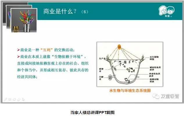 接下來,樓總分享了“匠人思維”的商業本質,商業在本(běn)質(zhì)上就像“生物依賴(lài)於環境”,直接或(huò)間接地依賴客觀上存在的社會、組織和個體當中,並形成相互(hù)依存(cún)、彼此共存的經濟共同體。所以,商業的(de)本質(zhì)不是打打打,不是(shì)殺殺殺,不是零和遊戲!而(ér)是(shì)你對社會的(de)態(tài)度、對(duì)環境的態度、對資源的態度、對他人的態度,從而換取“他人”對你的態度!唯有對他人有利的企業才會利己,你利於(yú)“他”,“他”才會(huì)更有利於你!