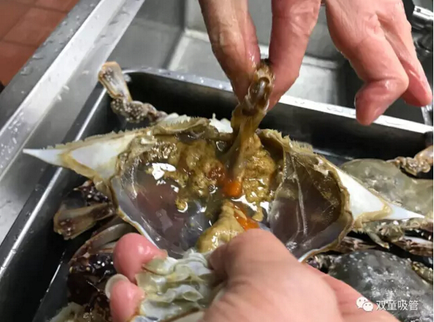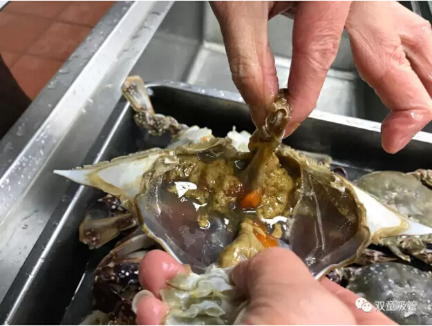 十一(yī)、一般情況下砂囊會隨膏體粘在蟹殼的嘴部,也(yě)可能在隨膏體粘在(zài)蟹身(shēn)嘴部,反正(zhèng)一定要找到取(qǔ)出!