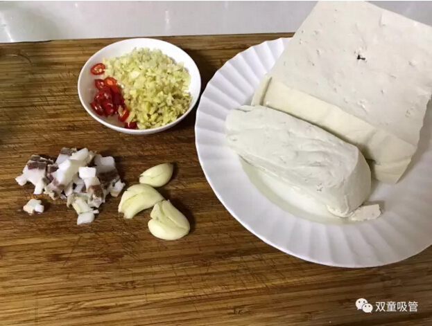 十九(jiǔ)、準備適量火腿,準備新鮮的鹽鹵嫩豆腐,一般一斤螃蟹配(pèi)3斤左右豆腐,豆腐一定要新鮮水嫩。