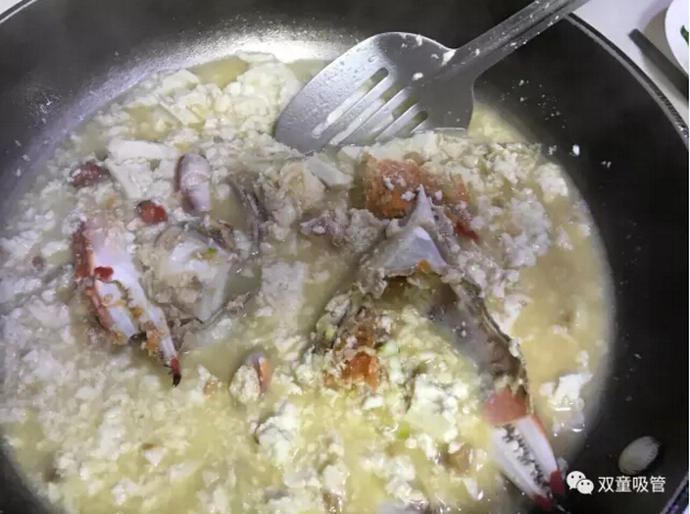二十三、螃蟹煎炒變色後加入食鹽、白糖、料酒或啤酒(jiǔ)適量。