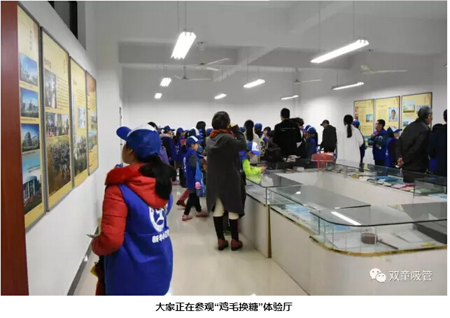 首先(xiān),大家一起(qǐ)來(lái)到了“雞毛換糖”體驗廳,參觀了(le)“雞(jī)毛換糖”的曆史展示。新華小記者們圍著當家人樓總爭(zhēng)先恐後的提出“雞毛換糖”問題,樓總也和孩子們講述了自己當年“雞毛換糖”的(de)故事。